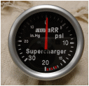 Supercharger boost gauge, anlogue gauge reading to 20psi of boost, we can custom make a gauge pod for mounting and trim this in leather to match existing interior trim if required.